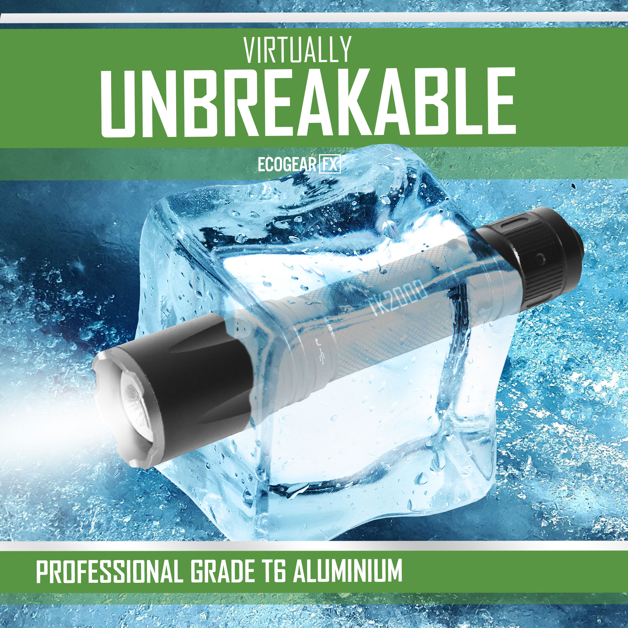 • RUGGED DESIGN: Durability that other flashlights do not offer, the TK2000 is constructed of durable aircraft-grade aluminum with a hardened anodized finish. Offering a professional grade construction that is lightweight, durable and withstands the harsh outdoor elements such as rain, snow, dust and dirt. Ideal for your EDC gear, hurricane preparedness emergencies and outdoor survival kits.